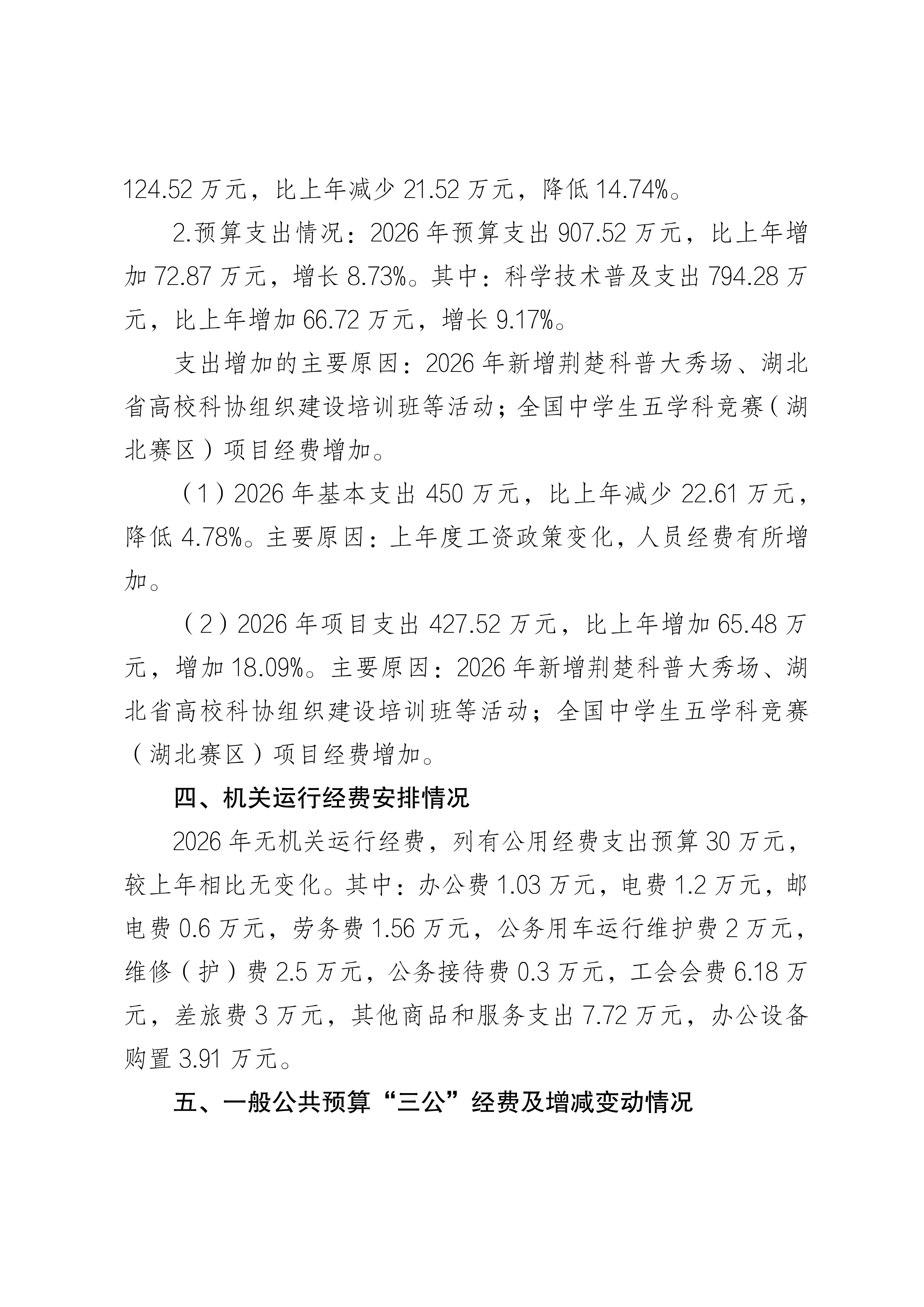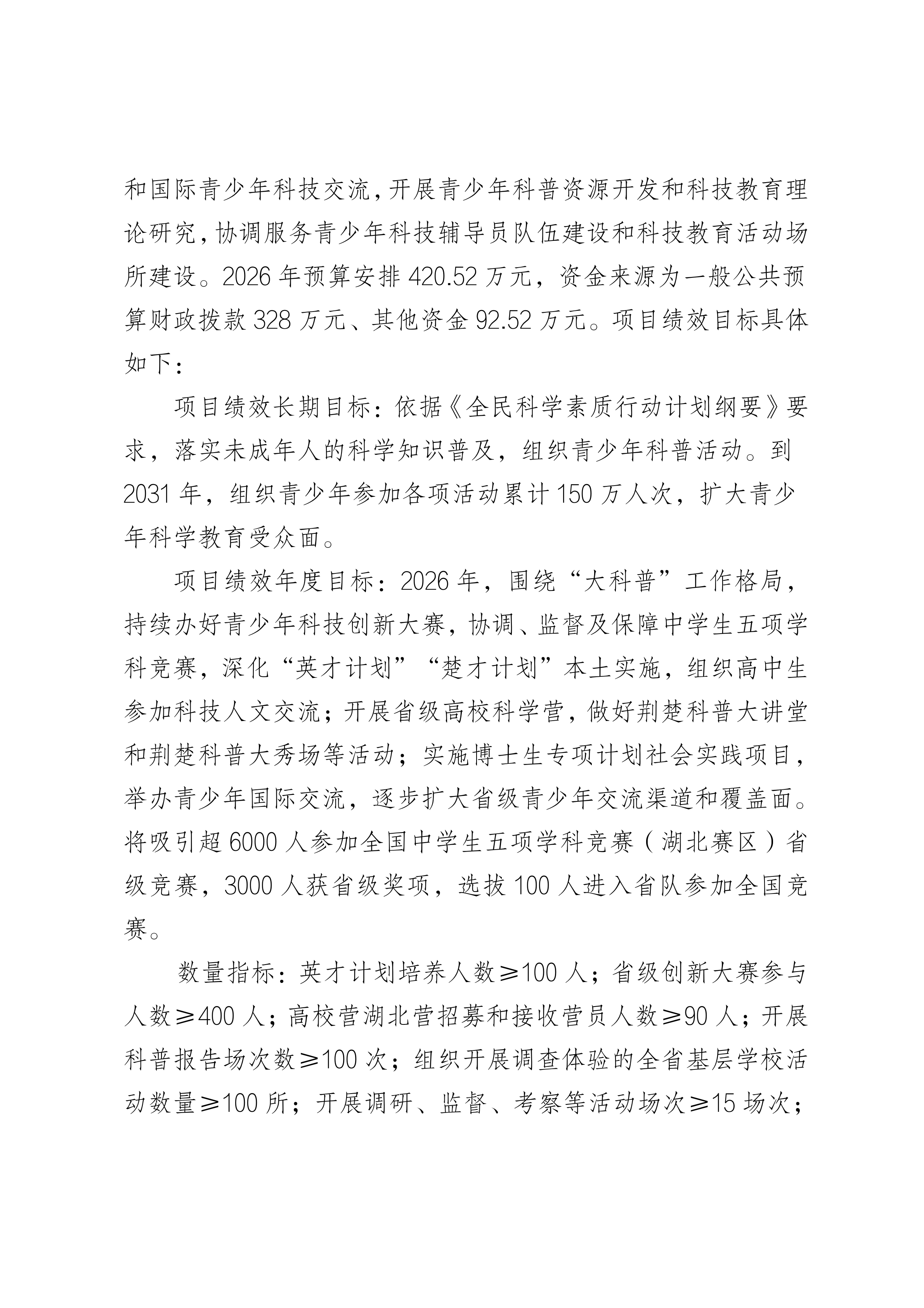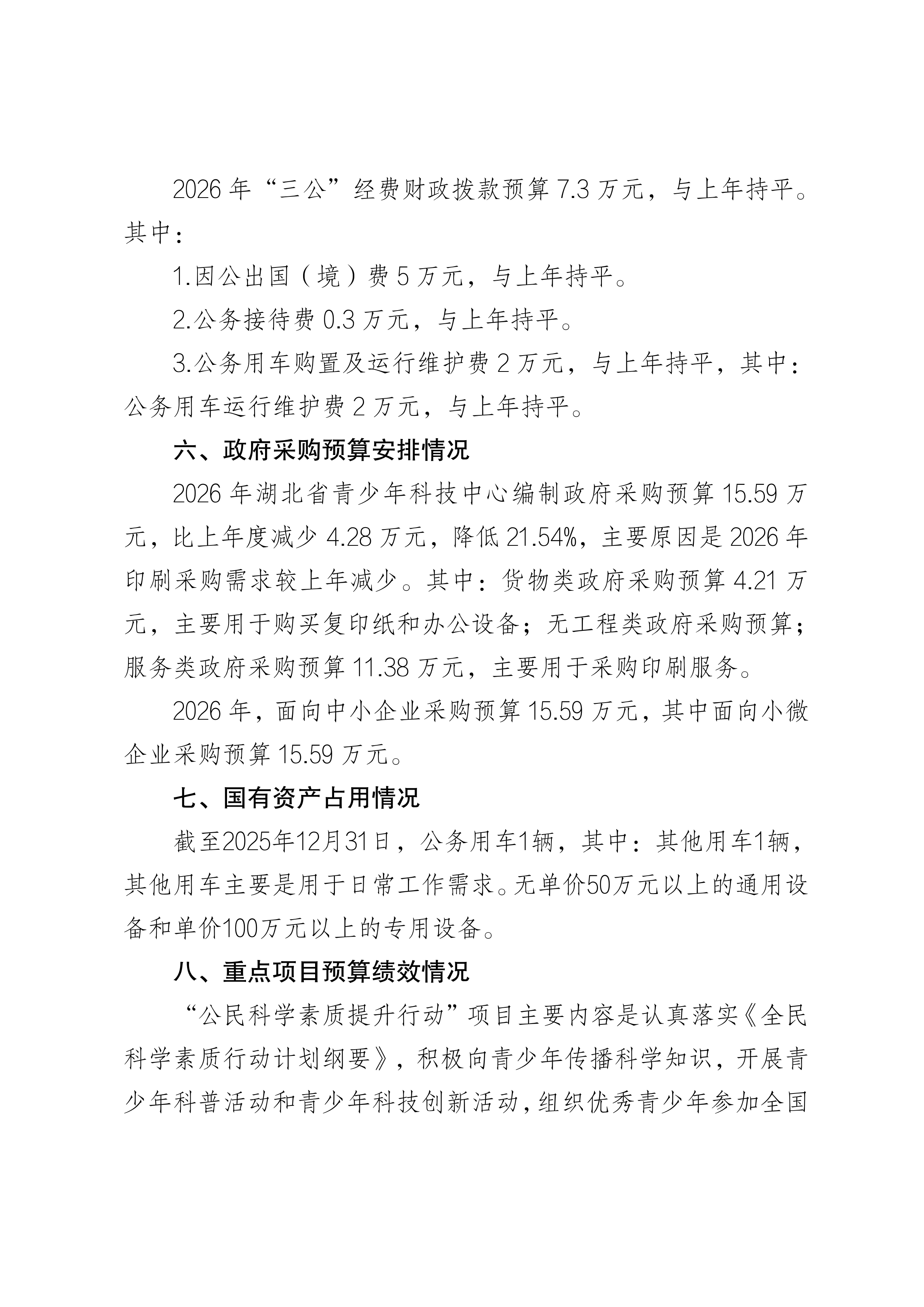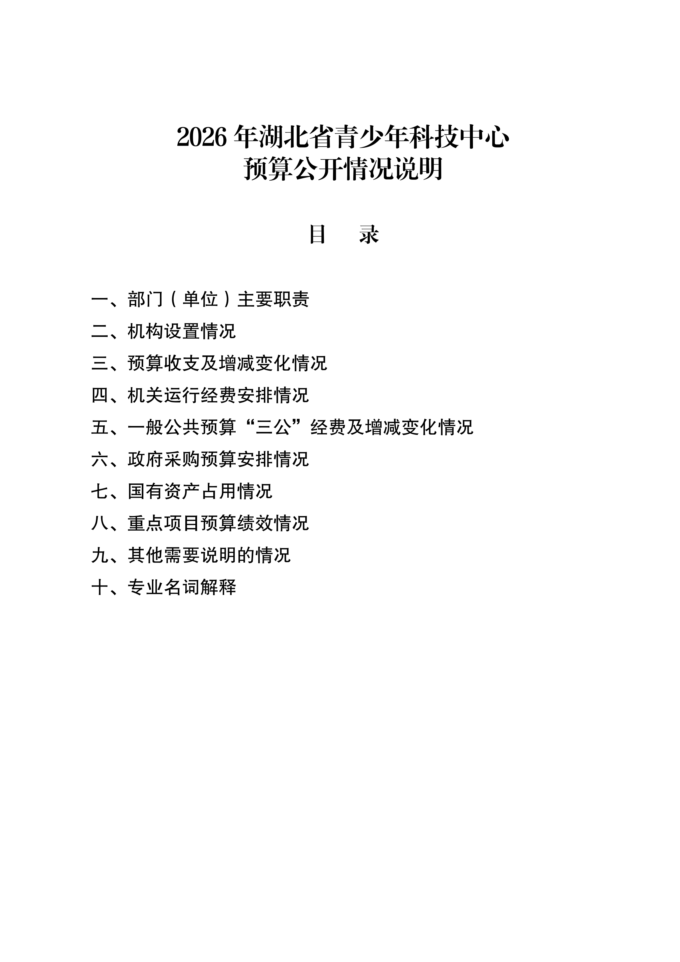 2026年湖北省青少年科技中心预算公开情况说明