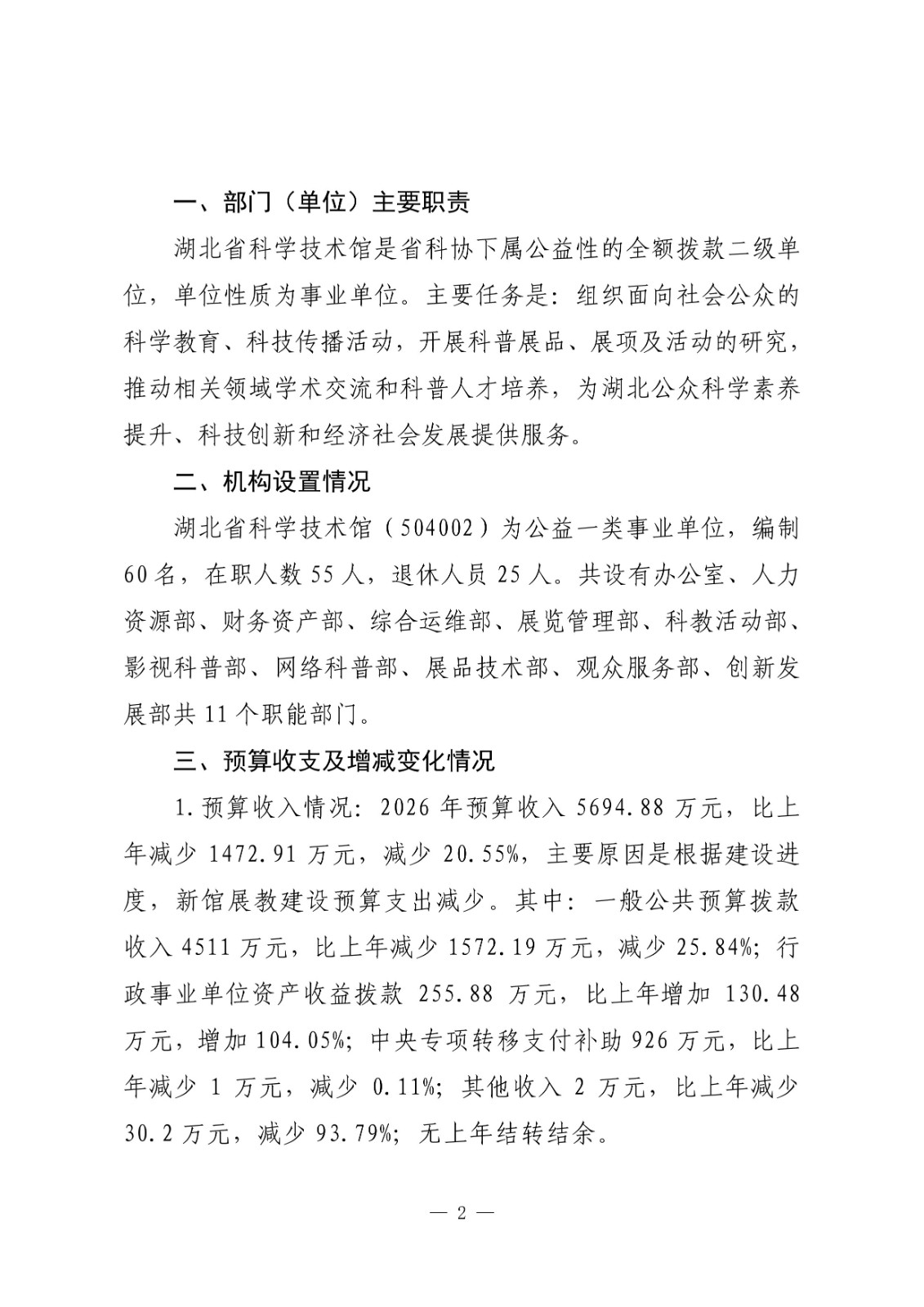 2026年湖北省科学技术馆预算公开情况说明