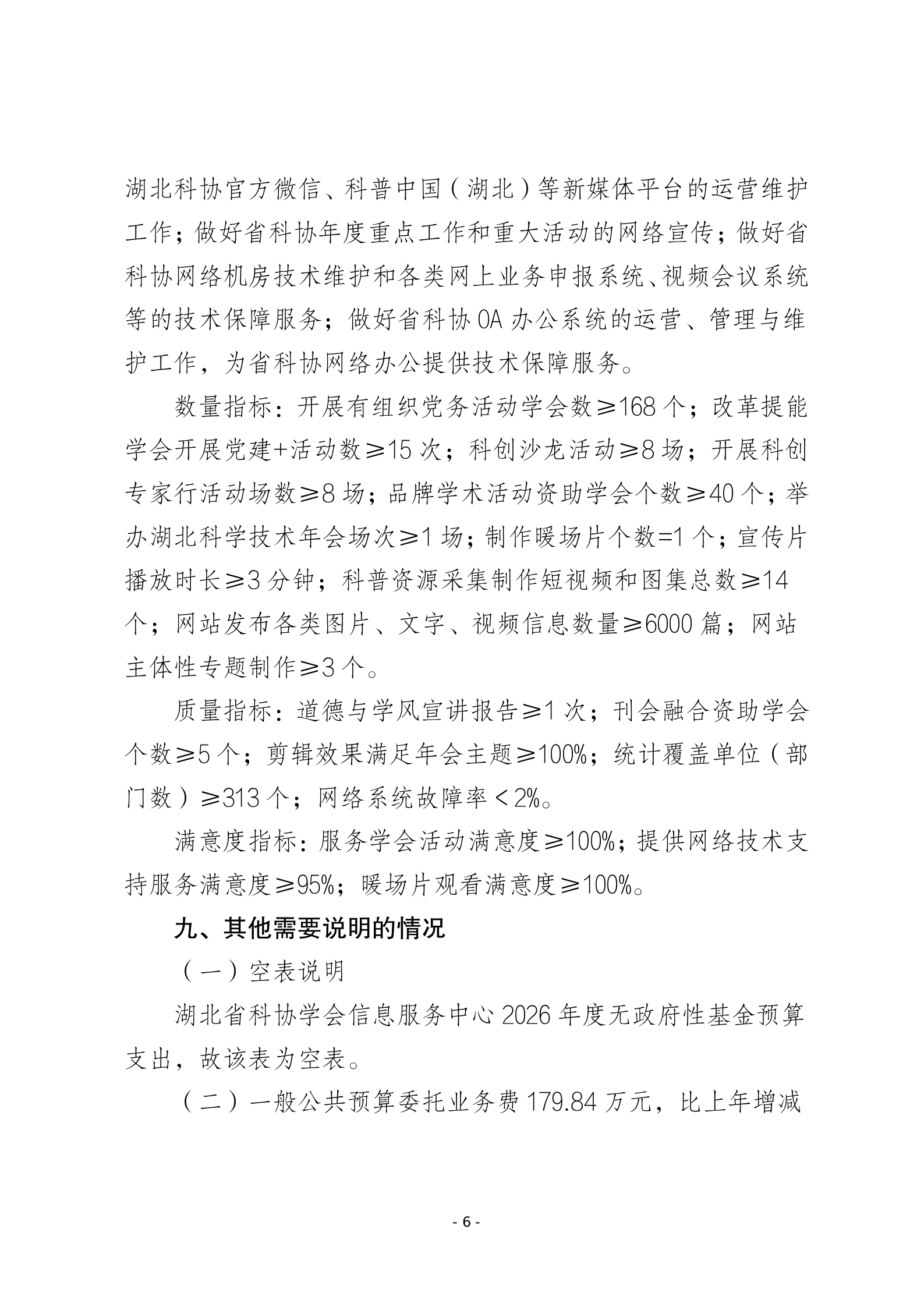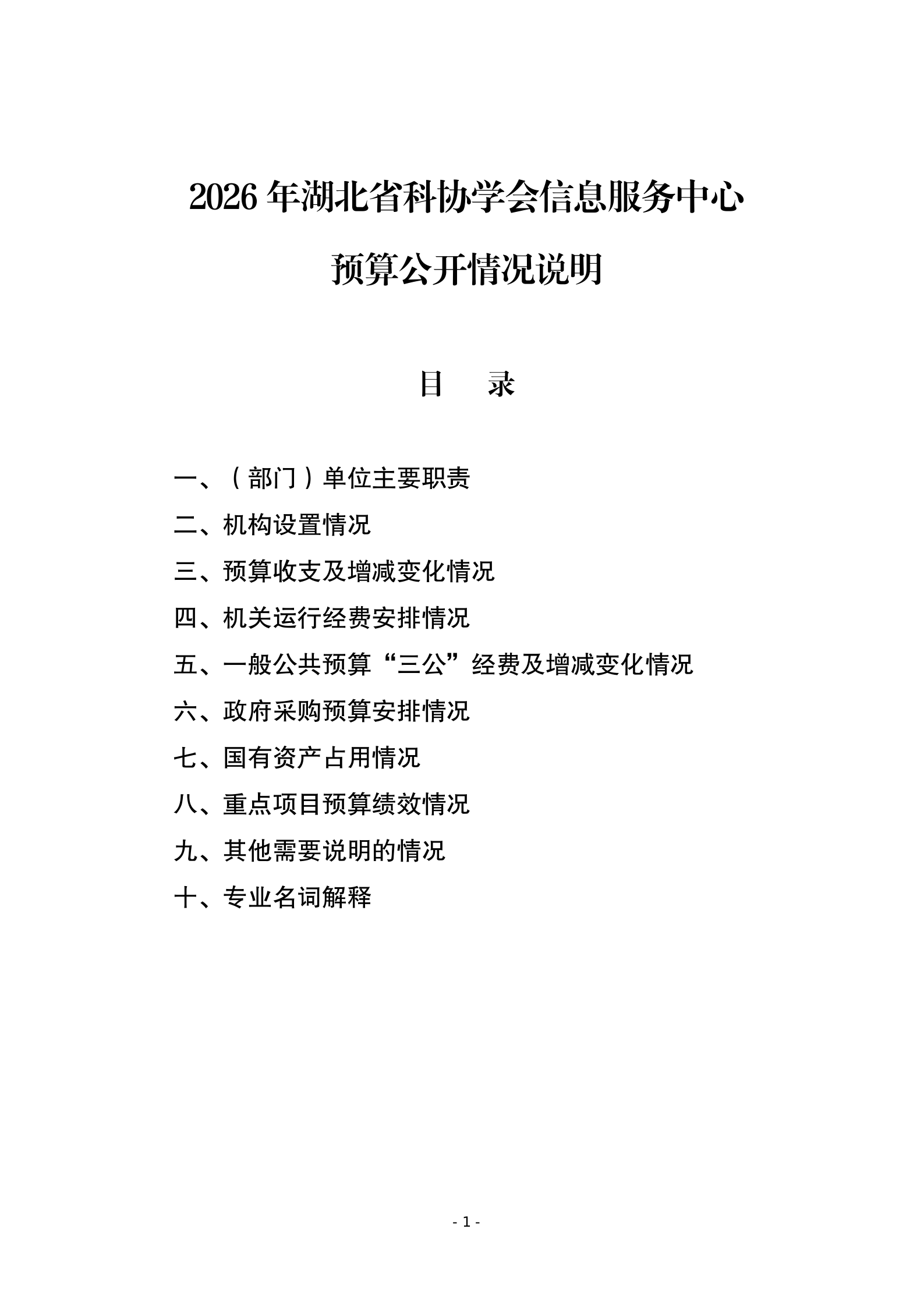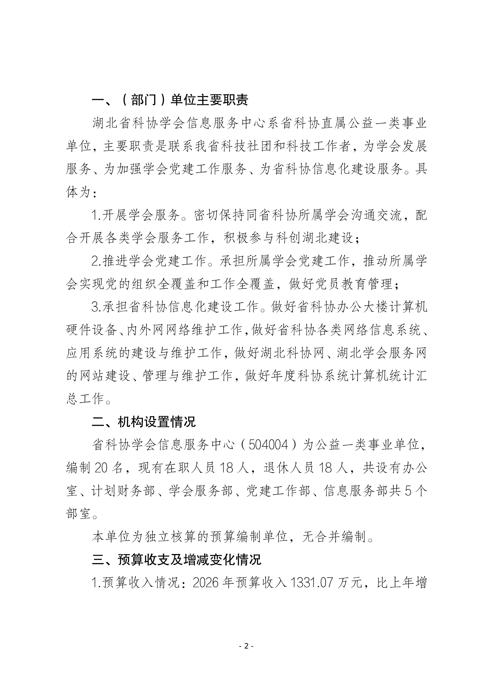 2026年湖北省科协学会信息服务中心单位预算公开说明