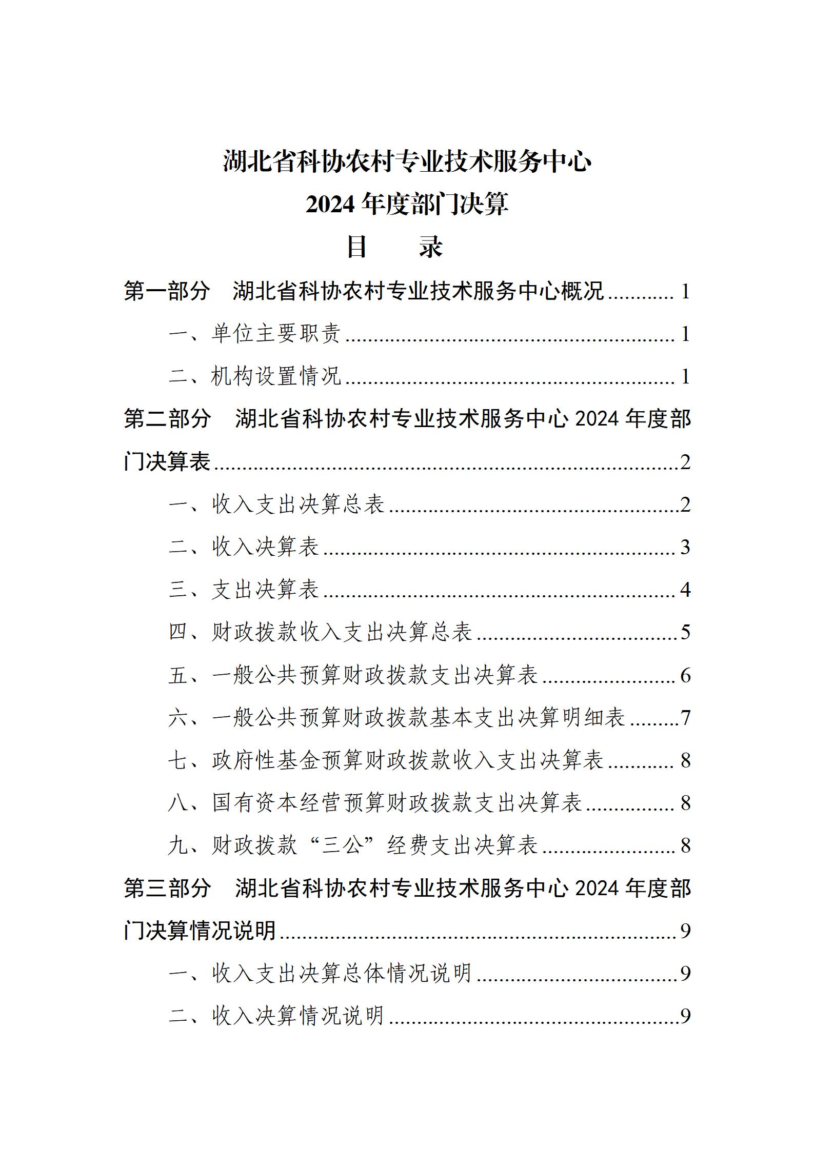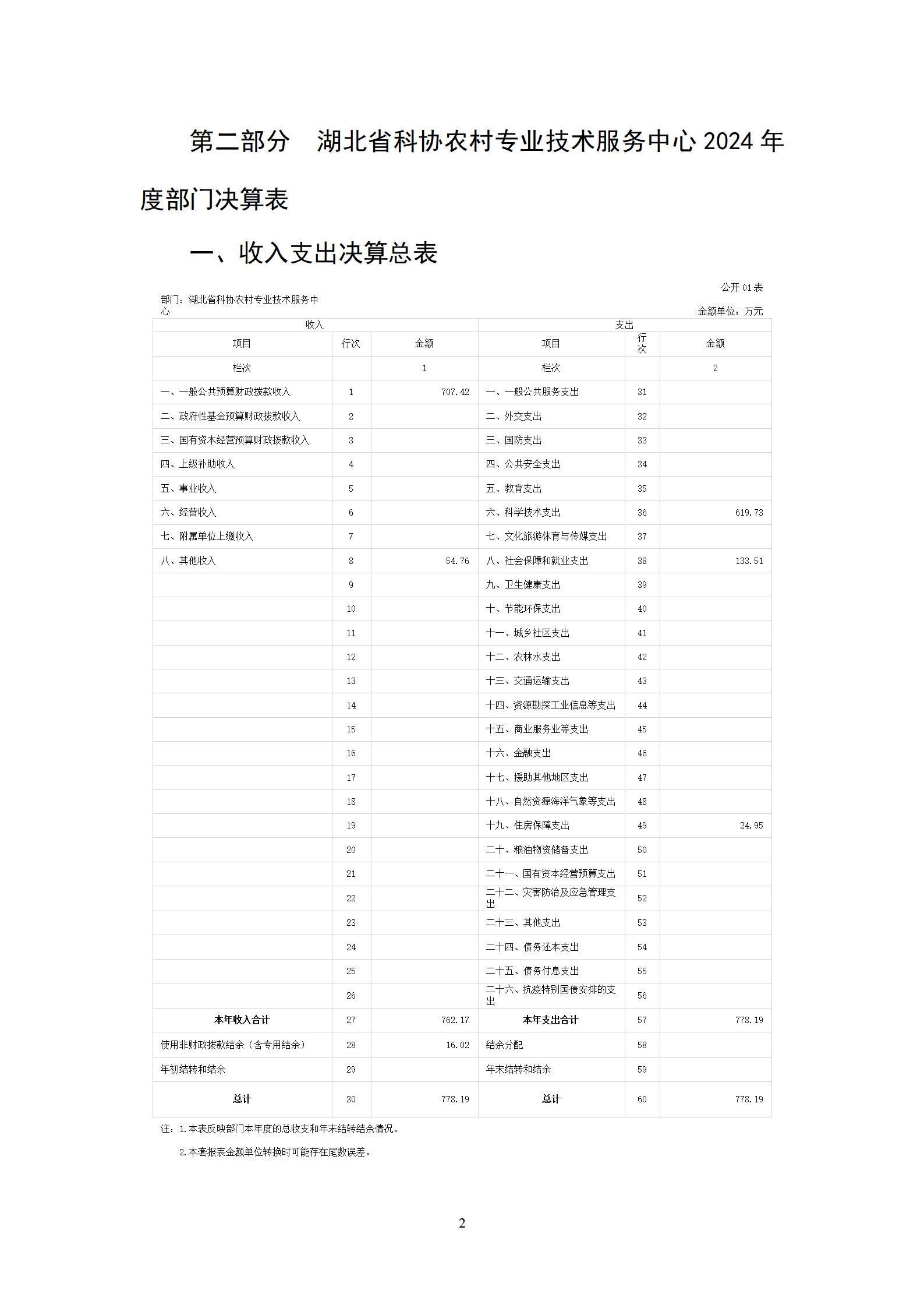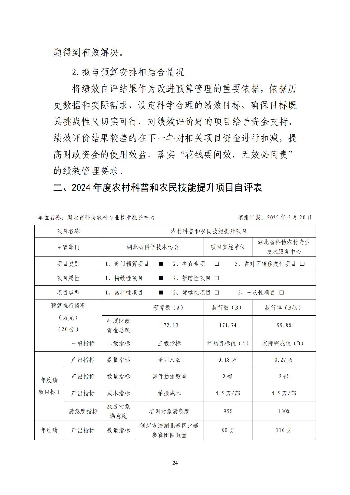 湖北省科协农村专业技术服务中心2024年度部门决算