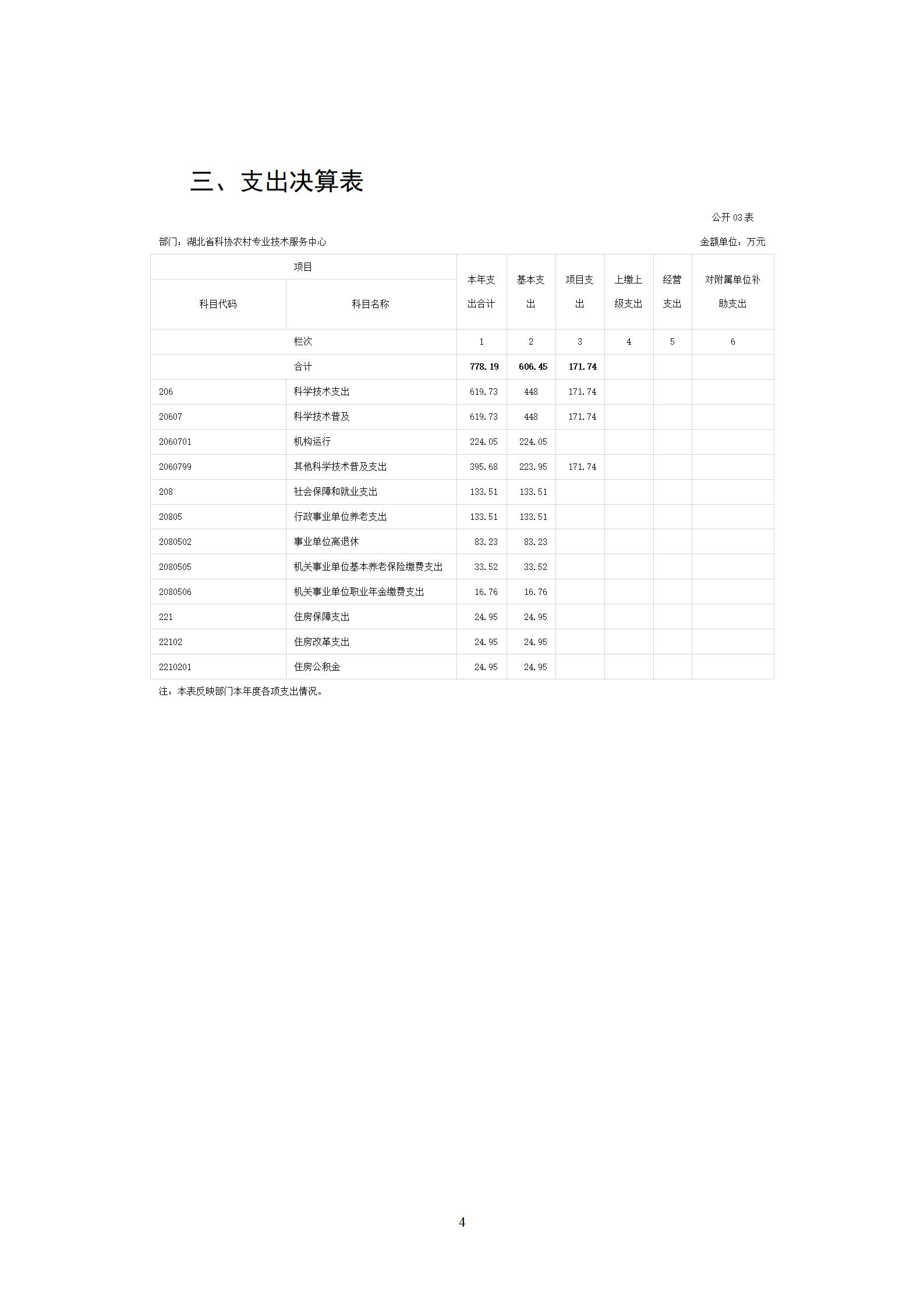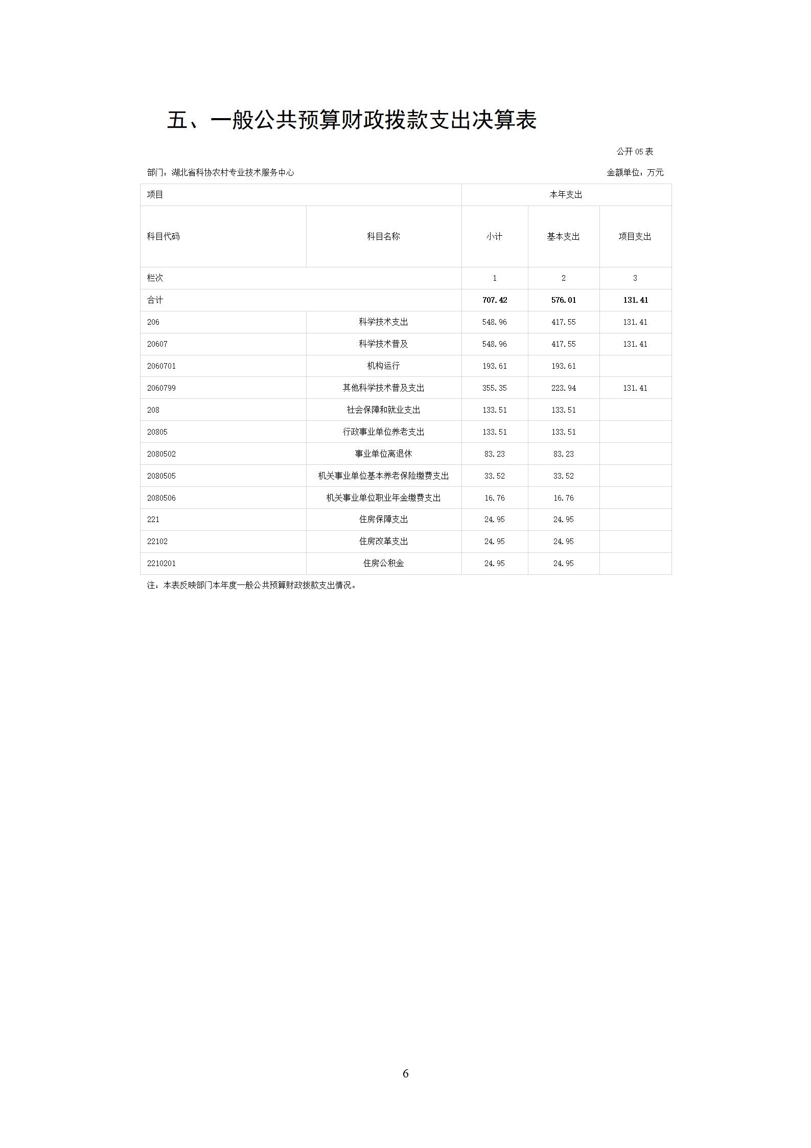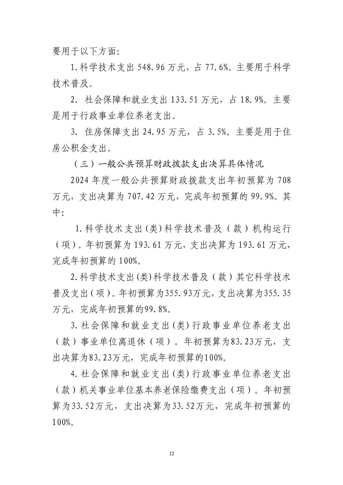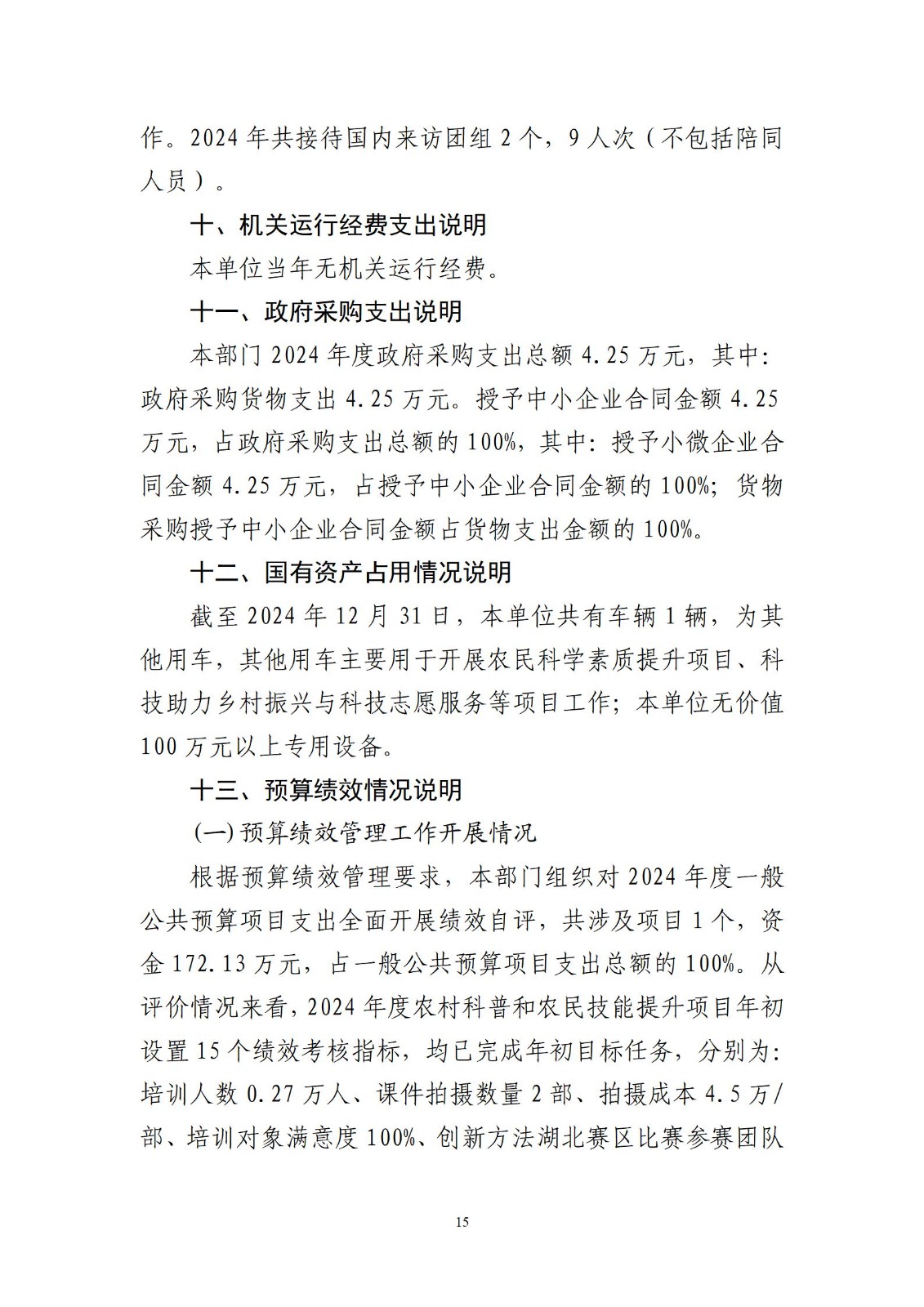 湖北省科协农村专业技术服务中心2024年度部门决算