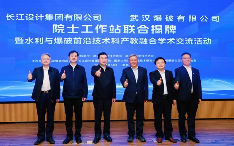 3月31日,长江设计集团有限公司、武汉爆破有限公司院士工作站联合揭牌暨水利与爆破前沿技术科产教融合学术交流活动在江汉大学举行。中国工程院院士、长江设计集团有限公司首席科学家钮新强,中国工程院院士、武汉市科协主席谢先启,省科协党组成员、秘书长马贵兵,武汉市科协党组书记、副主席胡军,长江设计集团党委副书记、总经理王汉辉,江汉大学党委委员、副校长、武汉爆破有限公司董事长贾永胜等出席活动。