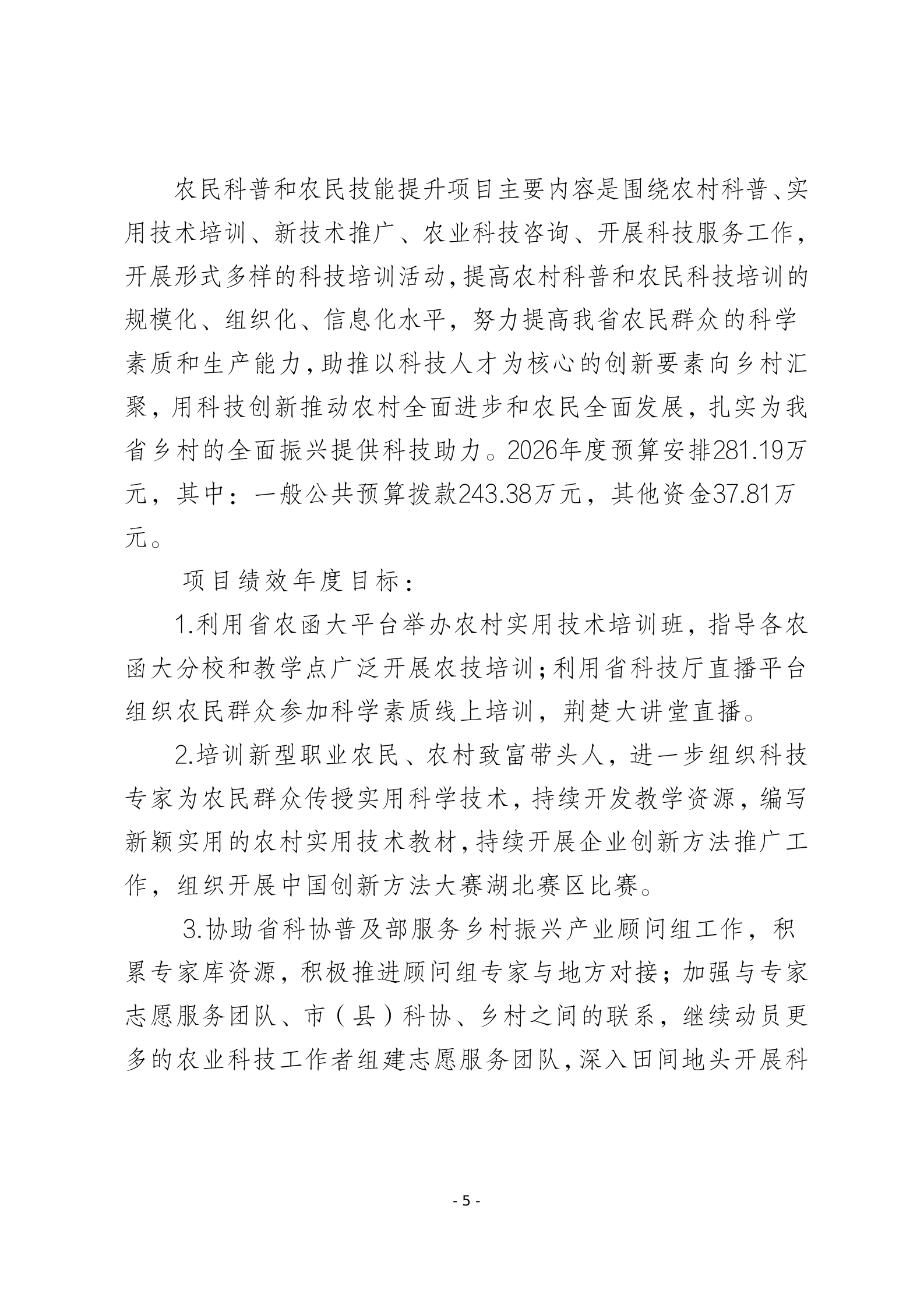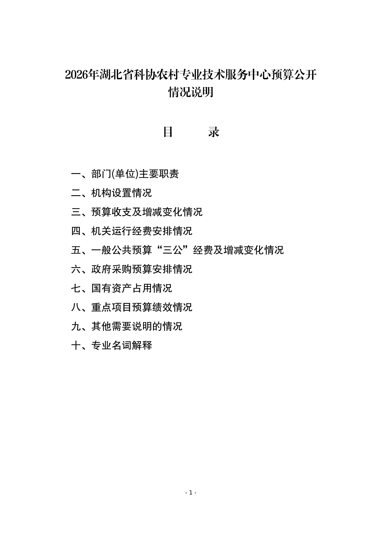 2026年湖北省科协农村专业技术服务中心预算公开情况说明