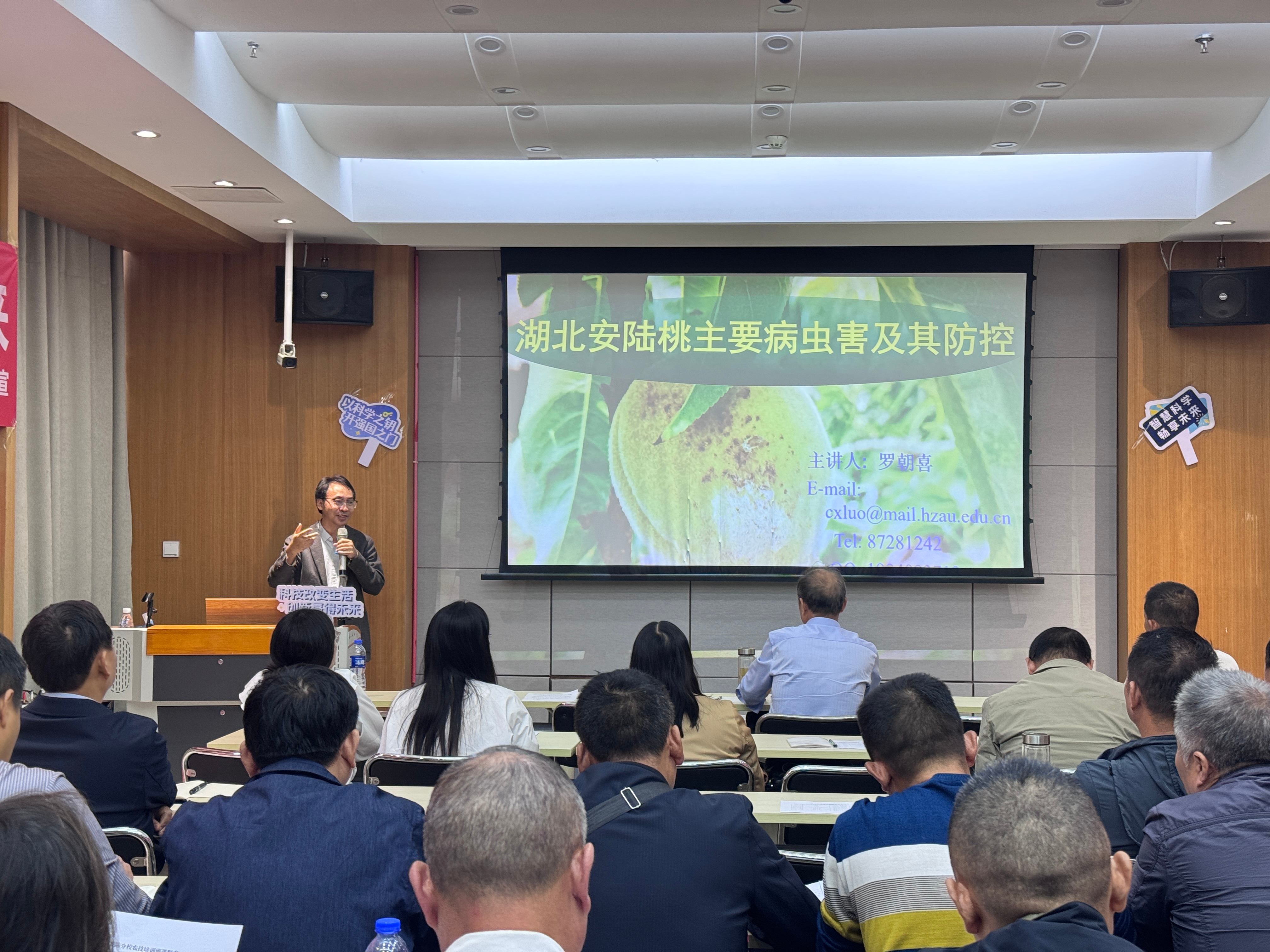 培训活动中,省农科院果茶所研究员何华平首先带来了“果园间作结合高产高效技术”的分享,为学员们讲解了如何在果园间作中实现资源的高效利用。随后,华中农业大学教授罗朝喜针对“桃园病害”进行了详细讲解,帮助学员们掌握病害防治的关键技术。省农科院植保土肥所研究员徐大兵则围绕“果园肥水技术”展开授课,让学员们了解到科学施肥与水分管理的重要性。最后,华中农业大学教授李国怀进行了桃园修剪示范,通过实际操作让学员们更好地掌握修剪技巧。