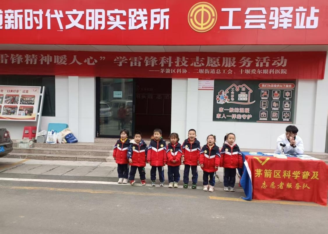 3月5日下午,十堰市茅箭区科协联合十堰爱尔眼科医院、二堰街道总工会、富康幼儿园等单位,在二堰街道富康小区工会驿站开展“学雷锋”科技志愿服务活动,旨在进一步弘扬雷锋精神,普及健康科普知识,以实际行动为新时代雷锋精神注入鲜活力量。