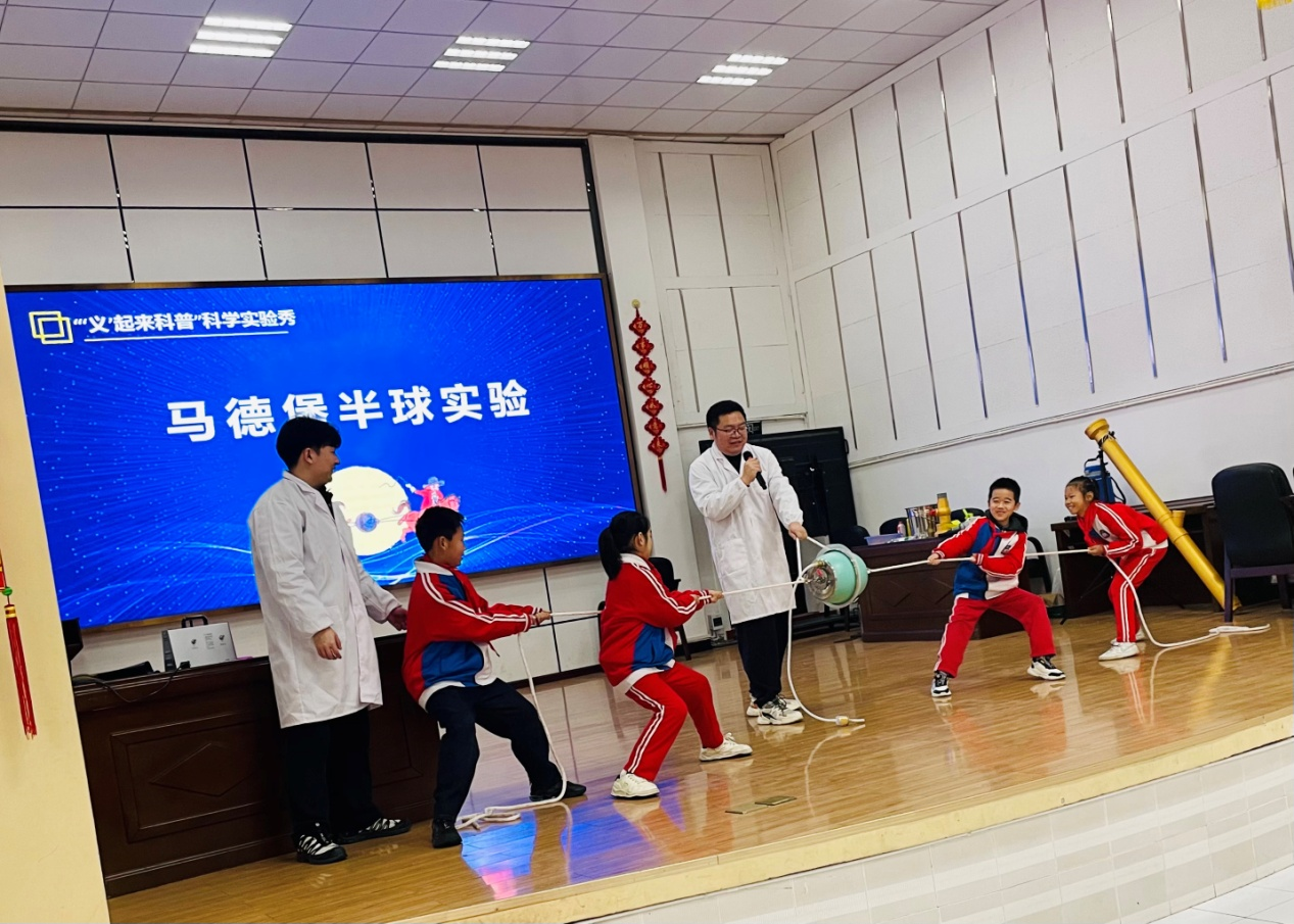3月12日,由宜昌当阳市科协主办,当阳市科技馆、当阳市机器人协会承办的“义起来科普”主题活动在当阳市实验小学拉开帷幕,一场别开生面的“科学实验秀”在这里精彩上演。科技志愿者为同学们带来了一场以“大气压”为主题的科学实验秀,马德堡半球、水火箭、液氮大爆炸等精彩实验轮番登场,让孩子们在惊叹声中感受科学的魅力。