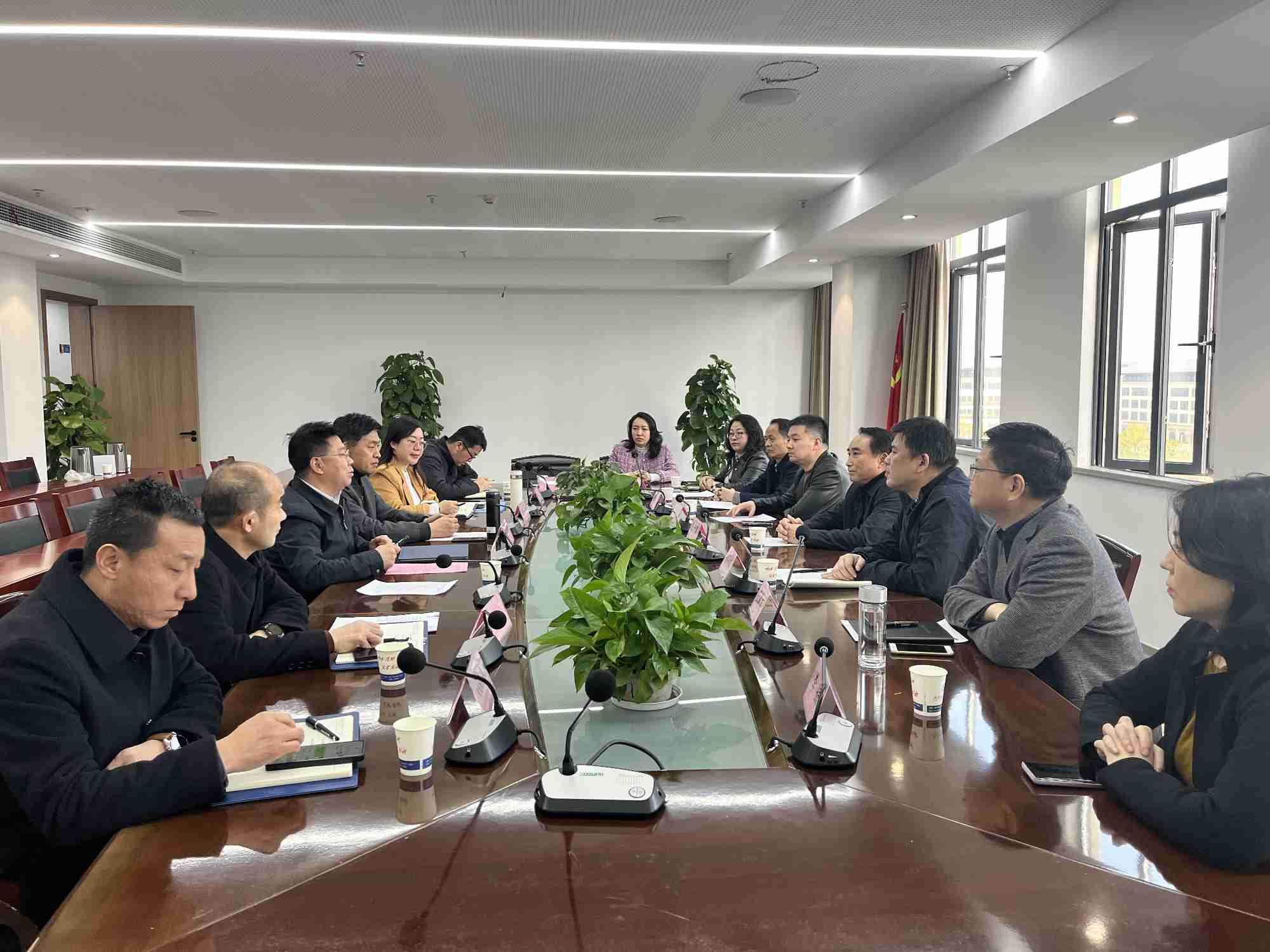刘海平(左三)与张开鹏(右四)、胡习文(右三)、张襄兵(右二)开展座谈交流