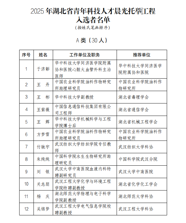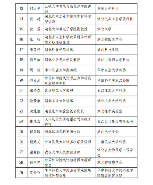 省科协希望入选的青年科技人才珍惜职业早期个人发展机会,不断探索未来成长和事业发展方向,持续开展原始创新、技术攻关、成果转化,在实现高水平科技自立自强和科技强省、人才强省建设实践中建功立业,为加快建成中部地区崛起的重要战略支点、奋力谱写中国式现代化湖北篇章贡献青春和智慧。