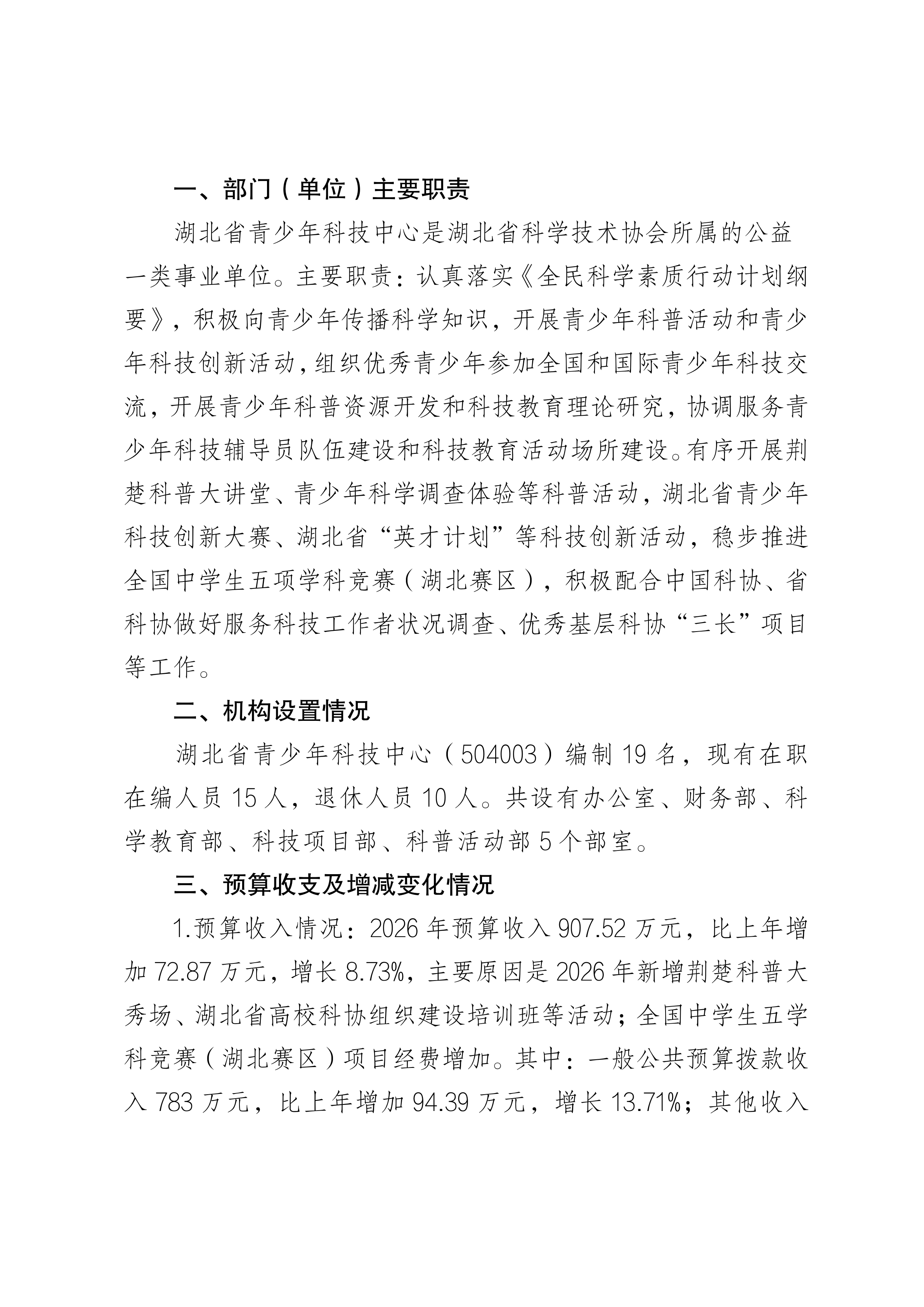 2026年湖北省青少年科技中心预算公开情况说明