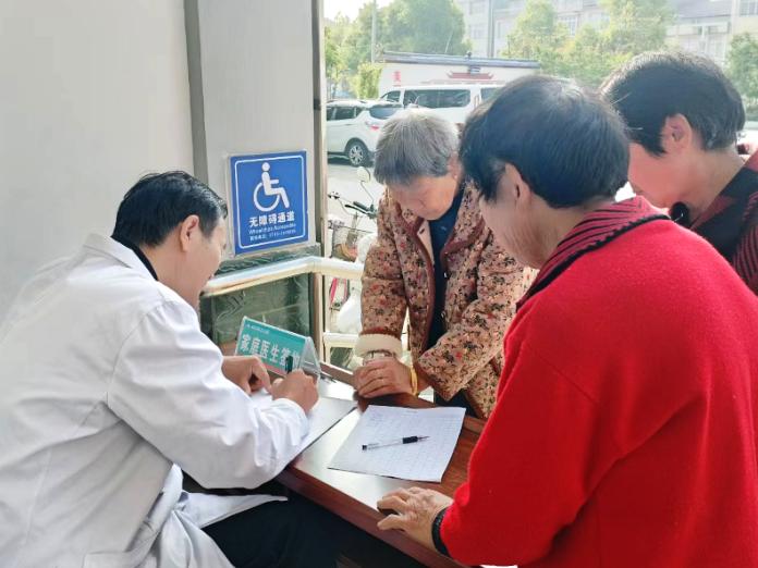 在青山村村委会大厅,设置了内科、外科、中医科、眼科等诊台,以及科普材料发放台。来自县中医医院、康健医院的专家为该村居民免费开展身体健康检查,对居民不同症状、疾病给予治疗建议。让居民在家门口享受健康医疗服务,提高居民的幸福感和获得感。
