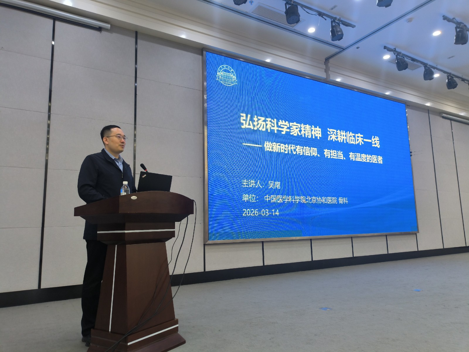 3月14日,中国科协“科学家精神百场讲坛”宣讲报告会在襄阳市中医医院举行。中国科学家精神宣讲团成员,中国科协常务委员会青年科技工作者专委会委员,中国医学科学院北京协和医院骨科副主任、主任医师吴南教授以《弘扬科学家精神 深耕临床一线——做新时代有信仰、有担当、有温度的医者》为题作宣讲报告。襄阳市中医医院党委书记皮红林出席活动,党委副书记、院长张敏主持报告会。