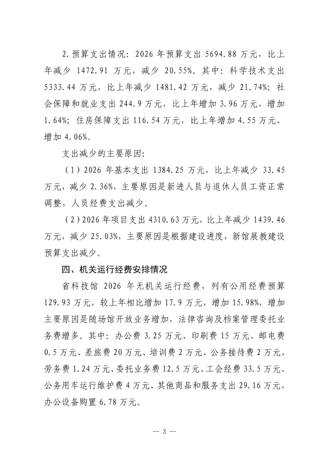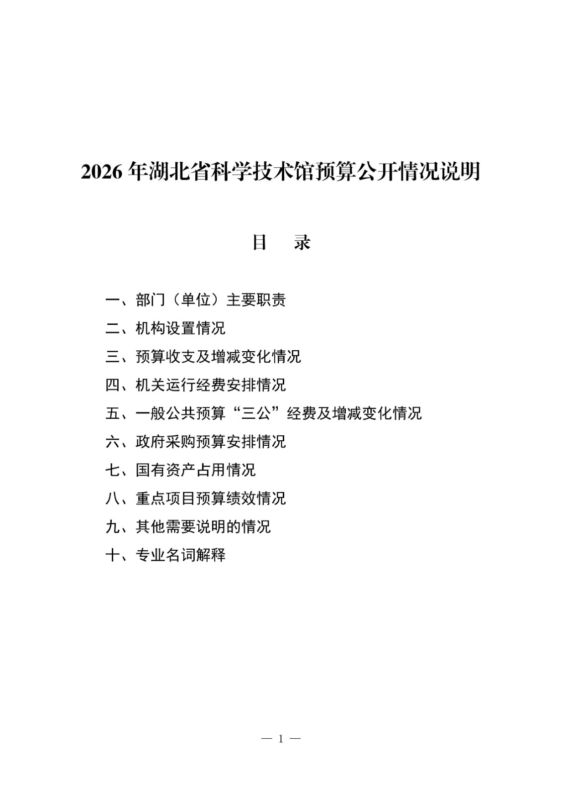 2026年湖北省科学技术馆预算公开情况说明