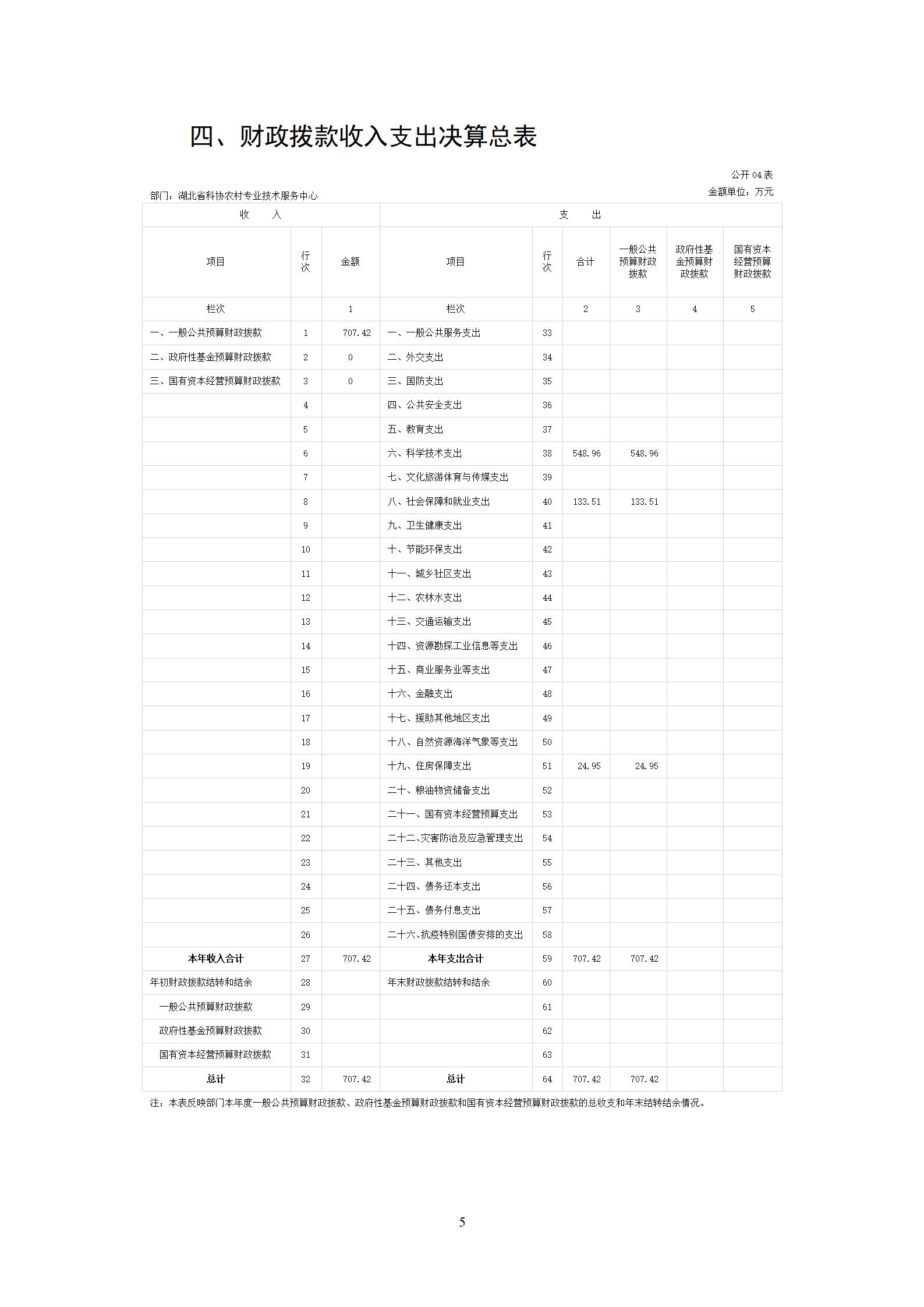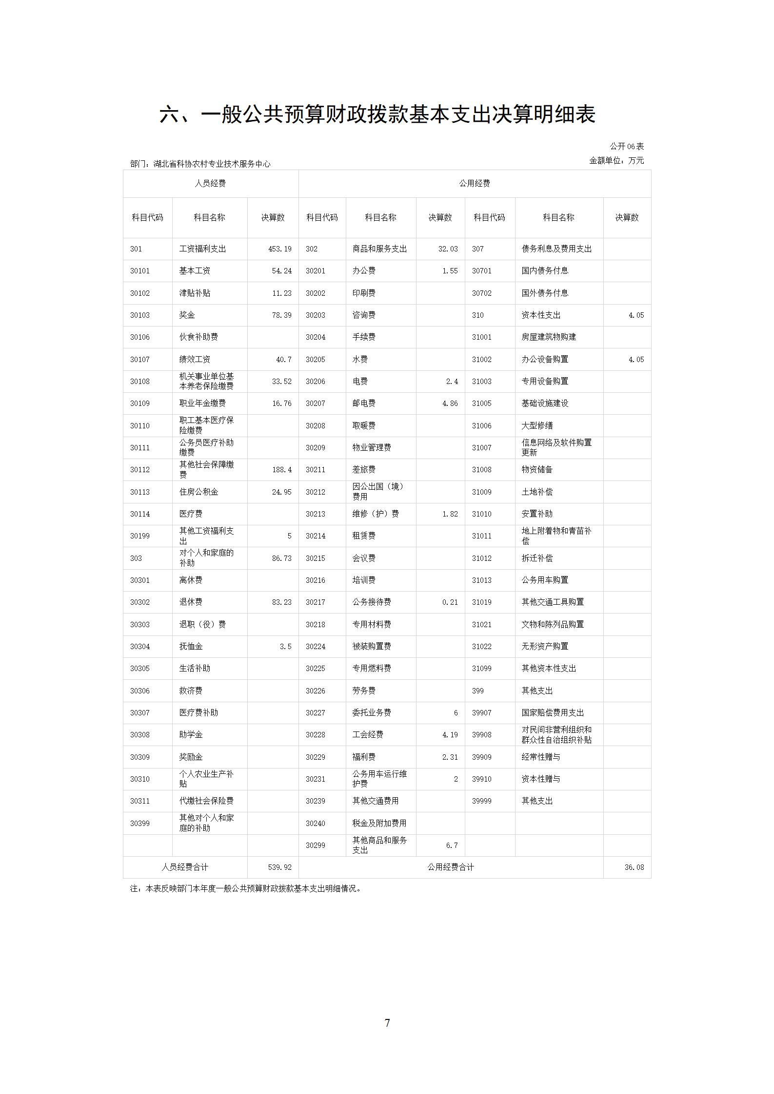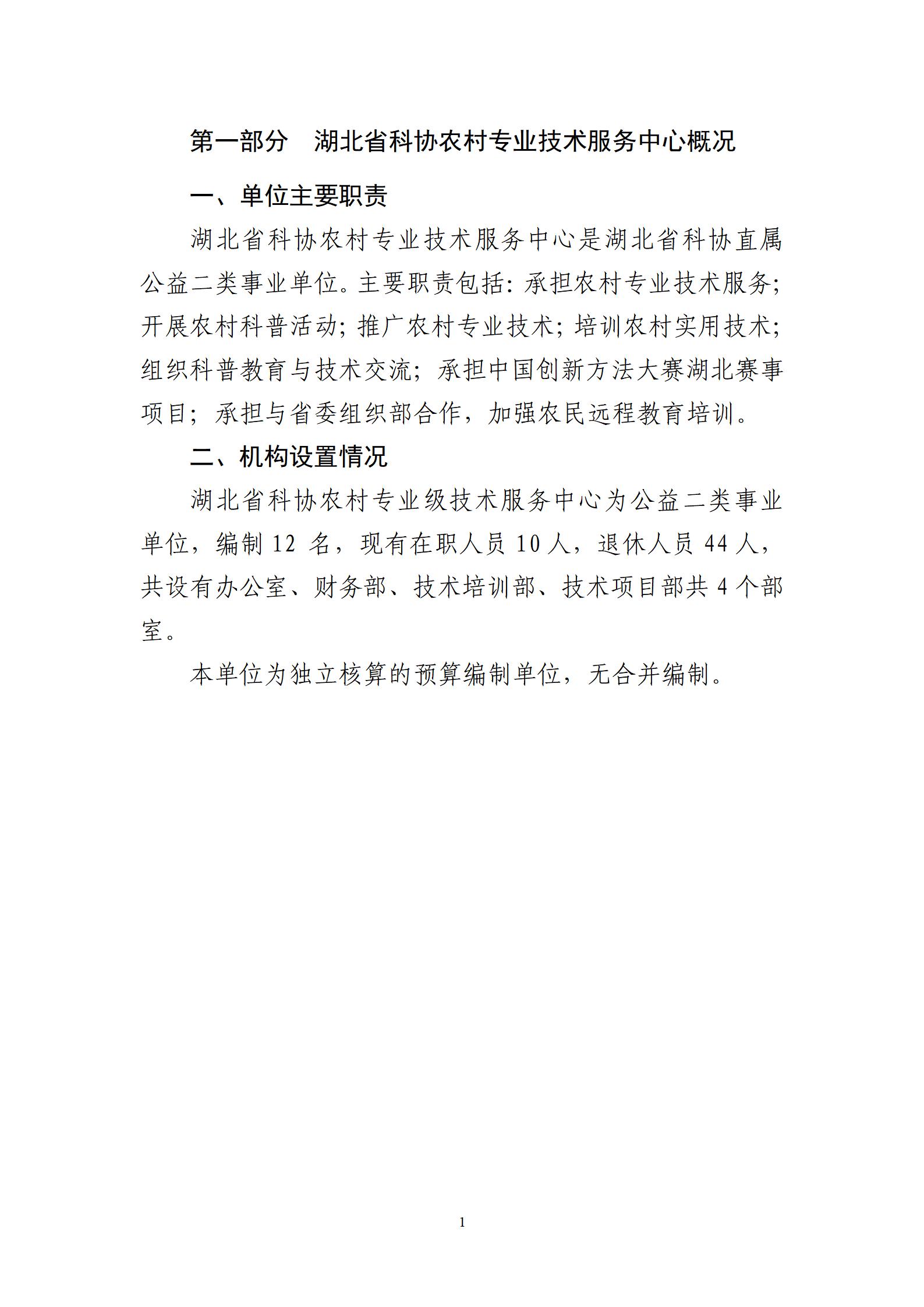湖北省科协农村专业技术服务中心2024年度部门决算