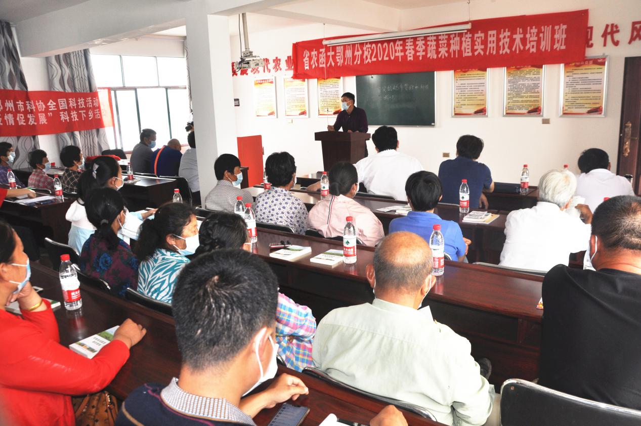 在全国科技工作者日来临之际,省农函大鄂州分校围绕鄂州市农业蔬菜产业复工复产,以“提升农民生产技能,助力农民收入增加”为目标,于5月15日--16日在志超家庭农场举办了两期春季蔬菜种植实用技术培训班。鄂州市农村农业局、市科协、市科技局和市公共检验检测相关人员出席了开班仪式。