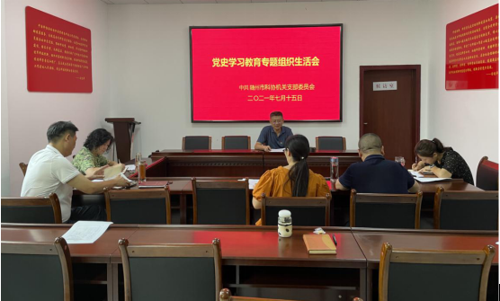 7月15日,随州市科协机关党支部在机关会议室召开党史学习教育专题组织生活会,机关党支部书记李霜报告了专题组织生活会前期开展理论学习、谈心谈话和征求意见等准备工作情况,并代表机关党支部从半年工作特别是开展党史学习教育情况、支委会检视问题情况及整改措施三个方面进行了述职。
