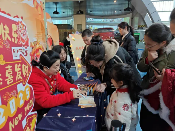 湖南省科技馆将传统文化与现代科技融合。在场馆共享大厅,设置四项新春互动小游戏项目,“墨印拓福”活动让游客亲身体验了传统拓印技艺的魅力,亲手拓制出寓意吉祥的“福”字,传递新年的美好祝福。临时展厅内,模拟航天飞行体验让游客仿佛置身于浩瀚宇宙,深切感受了航天事业的壮丽与辉煌。无人机表演展示现代科技的精湛技艺,让游客对科技的力量有了更直观的认识。航天梦想科学小制作体验活动激发了游客对航天科学的浓厚兴趣,有效培养观众的科学思维与创新能力。