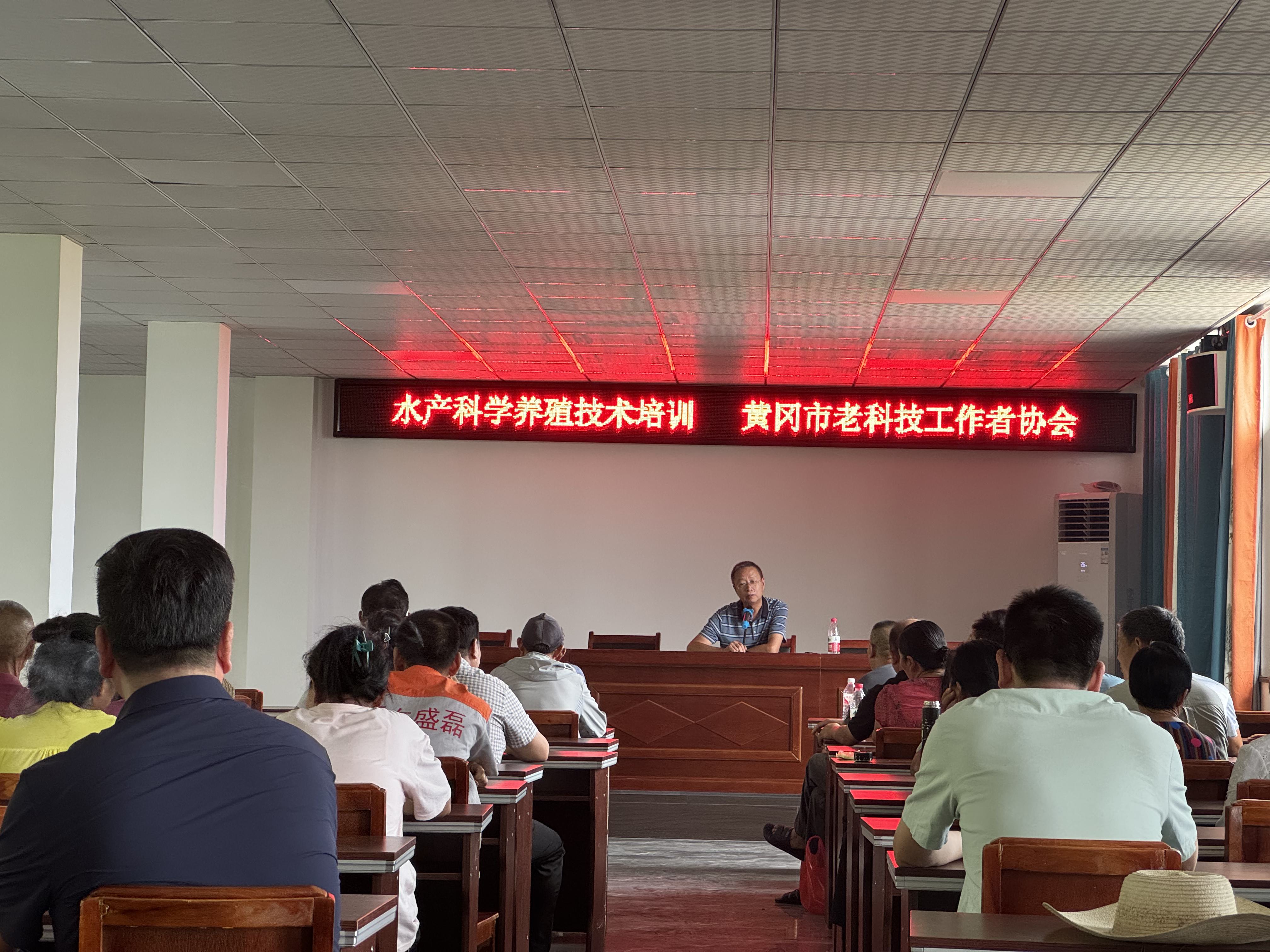 7月31日上午,黄冈市老科技工作者协会邀请黄冈市农科院水产专家周汝珍到浠水县巴河镇调军村开展水产养殖技术培训活动。