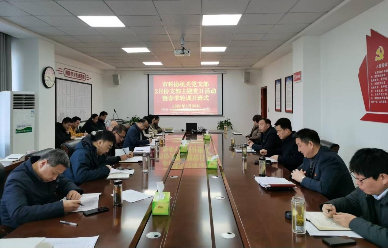 2月26日,十堰市科协机关党支部召开2月份主题党日活动暨党员春季轮训开班式,全体党员参会。