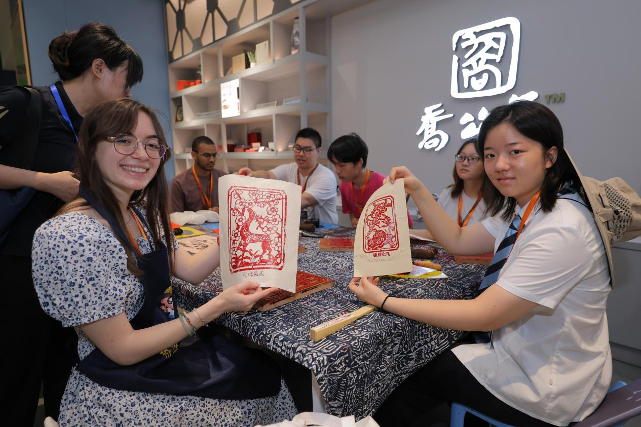 参观完展区后,青年们开展了体验了桥梁美学课程——拓画,近距离感受中国文化和传统技艺的魅力。当颜料清晰勾勒出画面轮廓,法国青年兴奋地展示自己的作品,直言“这是第一次用这样的方式‘记录’桥梁,很特别”。