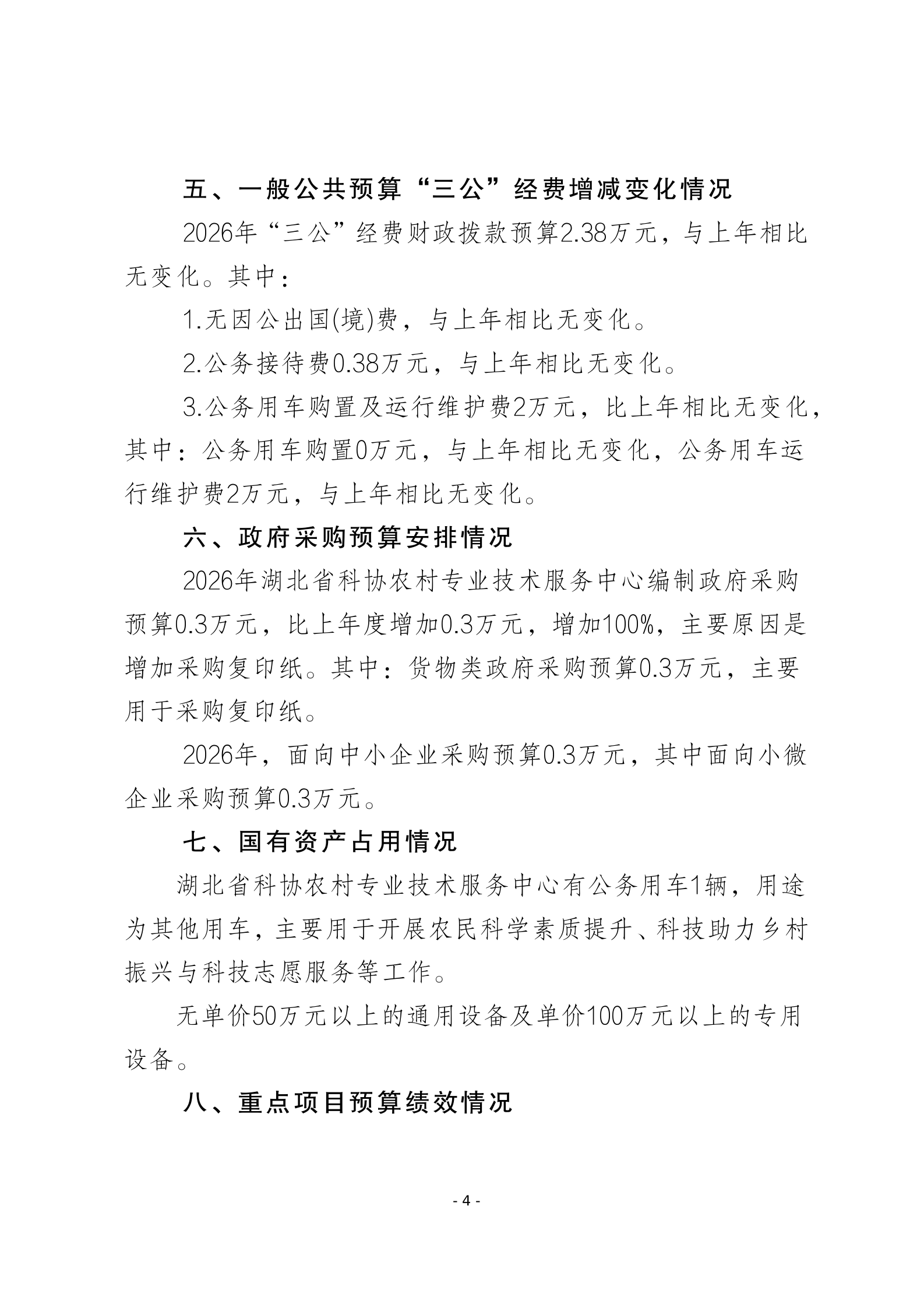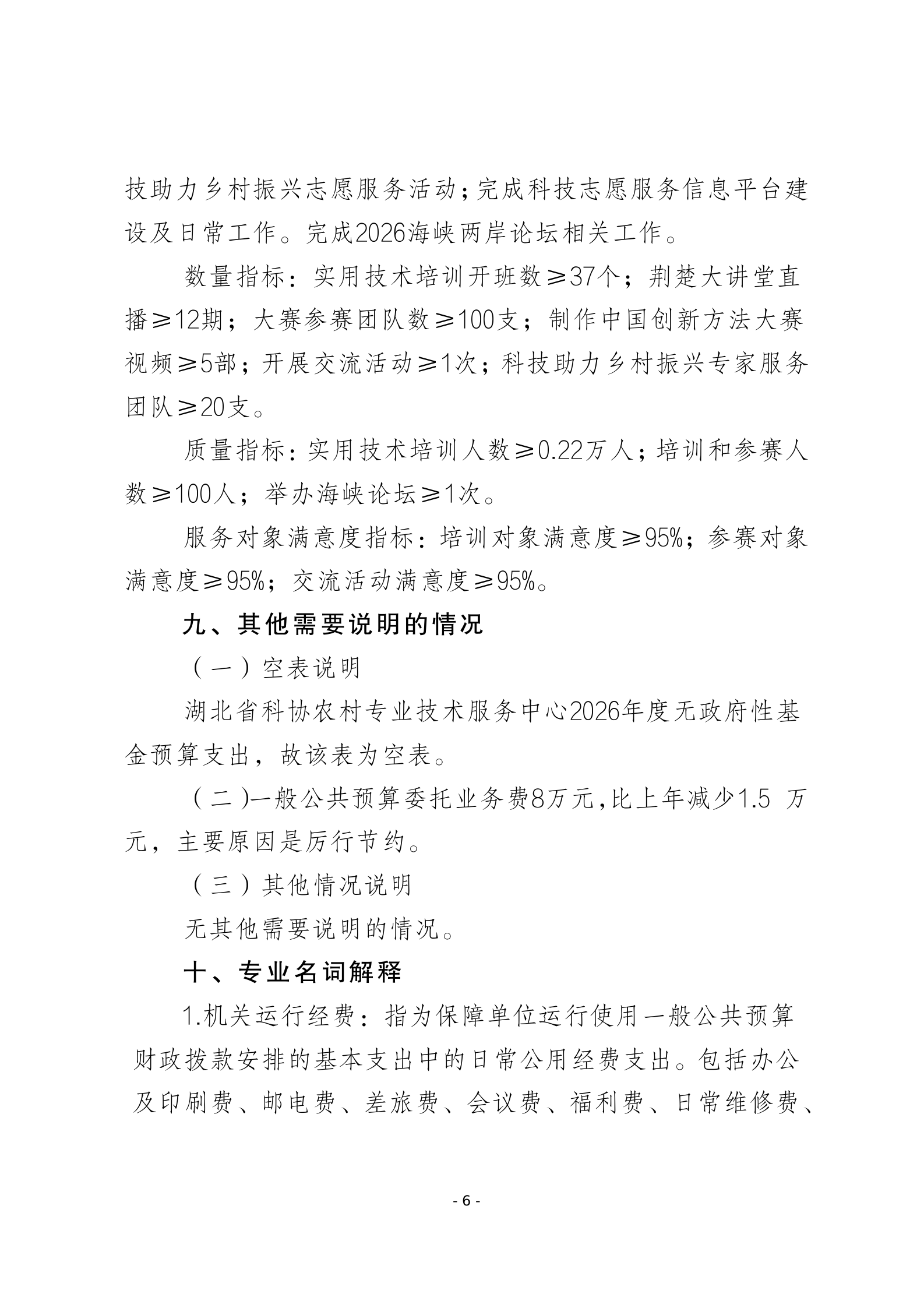 2026年湖北省科协农村专业技术服务中心预算公开情况说明